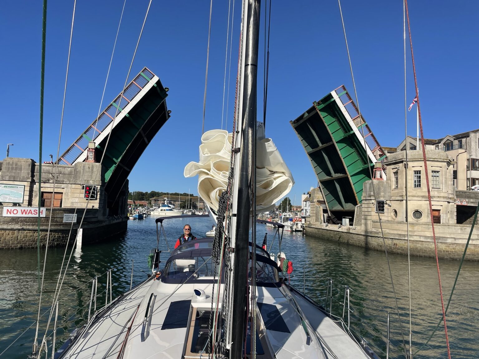 On Friday we enjoyed a beautiful sail to Weymouth. We left in fine weather and flat seas with the wind a delightful 9 knots which built up to about 14.