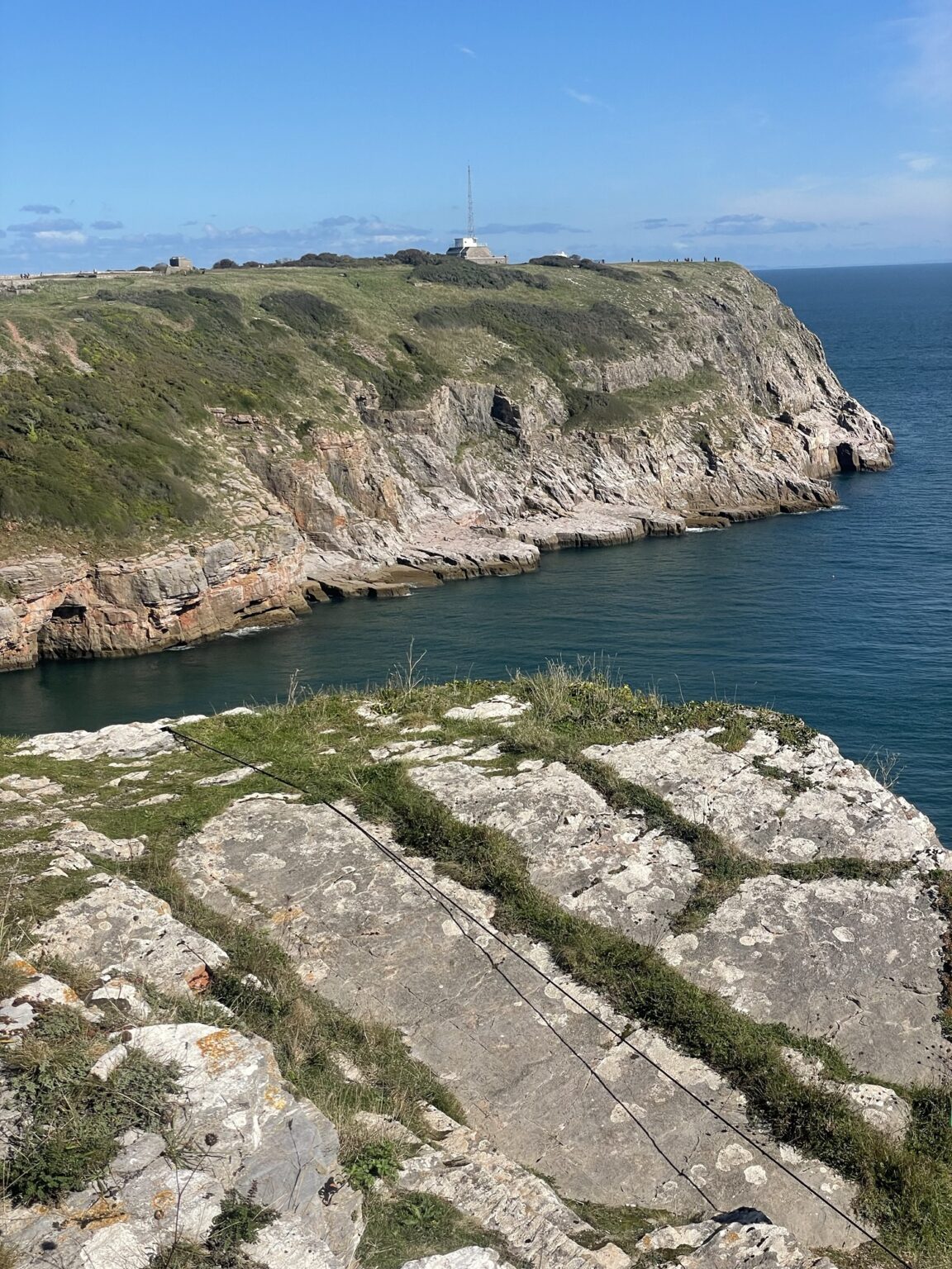This is also a protected wildlife area with kittiwakes and guillemots nesting on the cliffs in Spring and horseshoe bats inhabiting the caves. We saw a kestrel and a swallowtail butterfly.