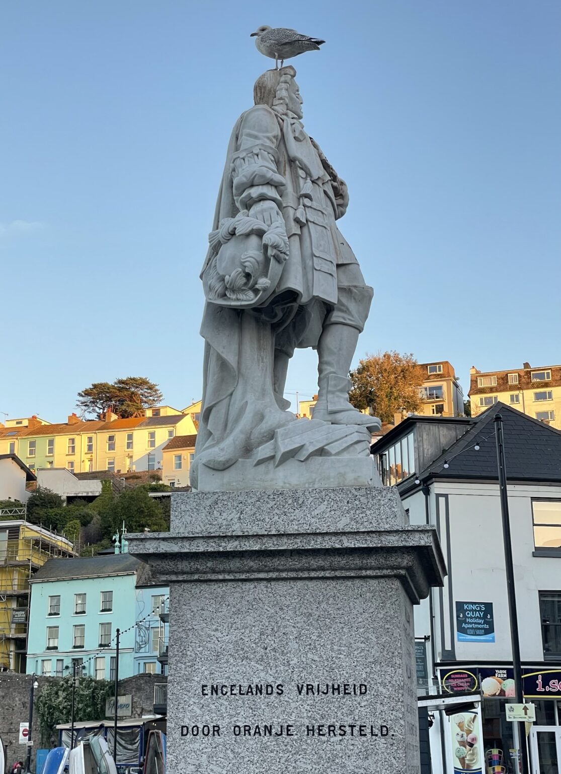 Brixham’s other claim to fame is that it was here that William III of Orange landed in 1688 to take over the crown from James II. He was welcomed by parliament, as to them even a Dutchman was better than a Catholic, but he had brought 14,000 troops with him just in case. Of course he was also married to Mary Stuart, James’ sister so they ruled as William and Mary. Only the Scots were sad.