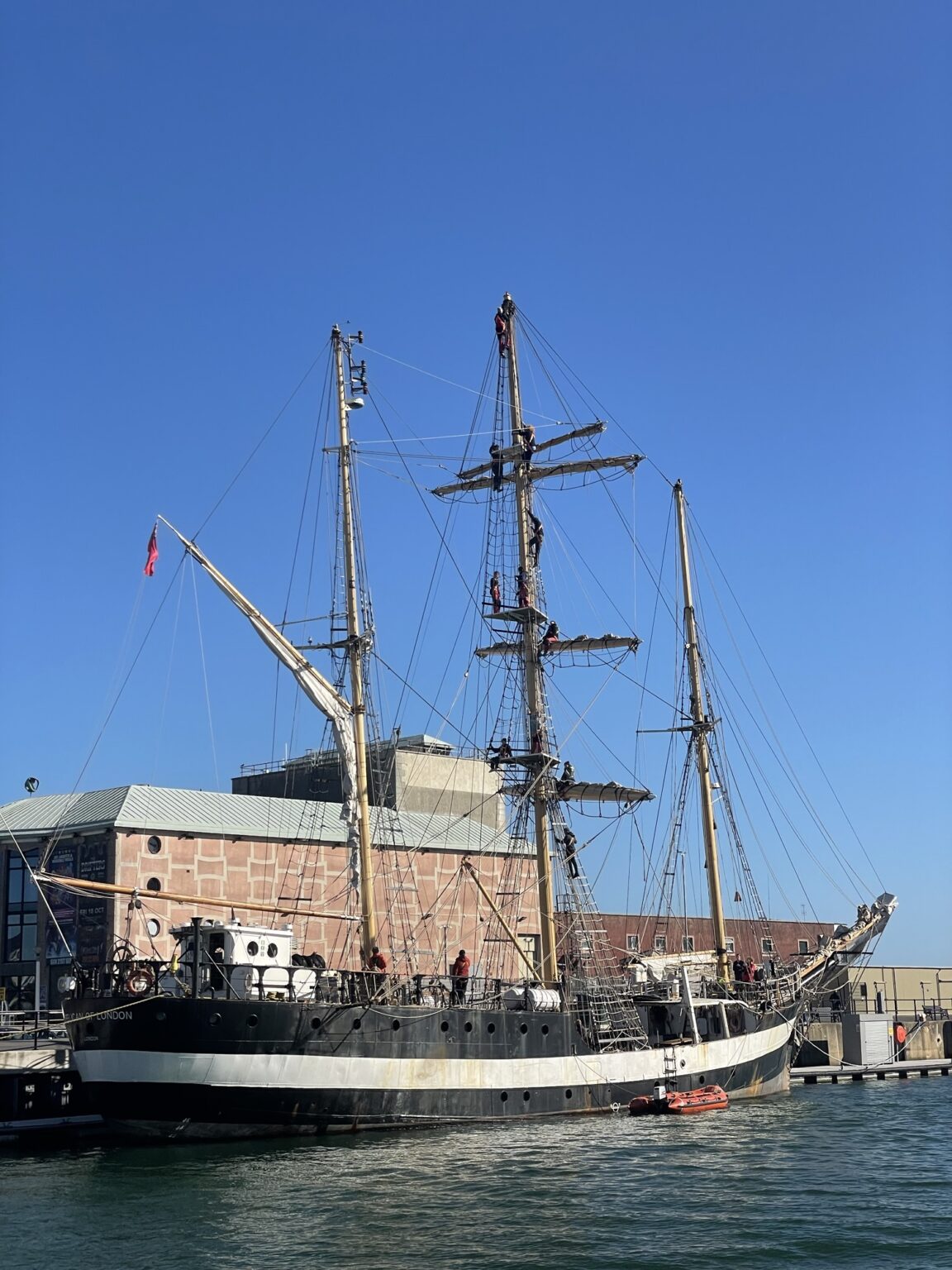 Heading out we passed the Tall Ships Youth Trust boat that we see regularly, and the Pelican with her crew up the rigging.