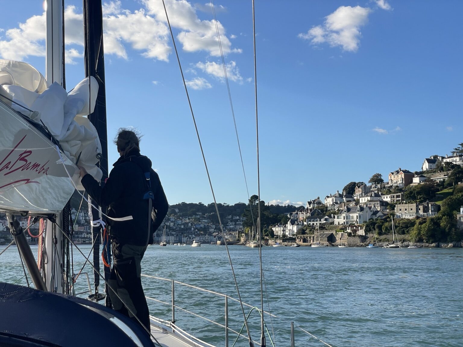 And to welcome us were the Dartmouth dolphins! (as we now call them) – playing in the bows and popping up under the boat! We saw two together – one big, one small which must have been a mother and baby. It was a lovely finale to our voyage.