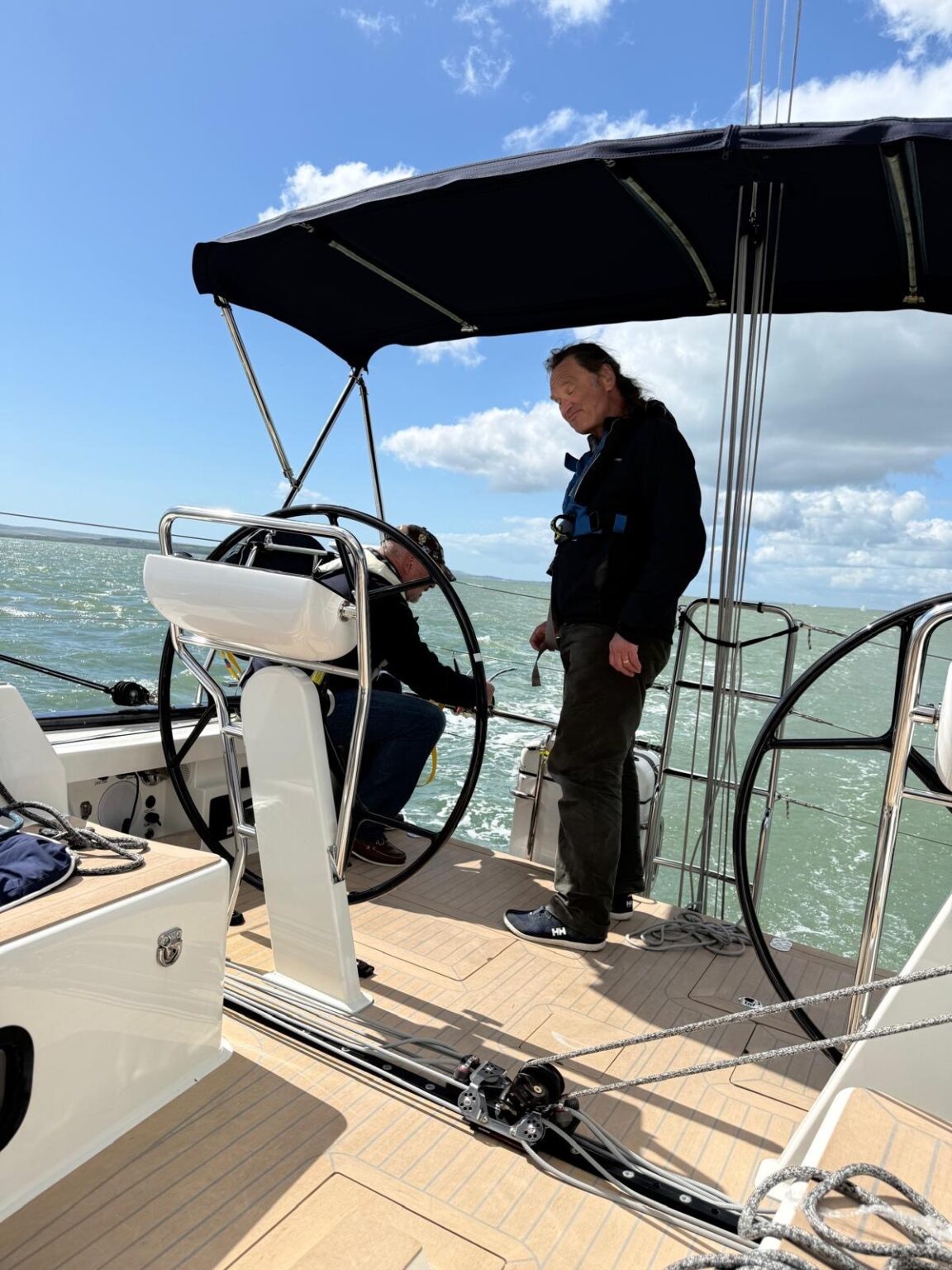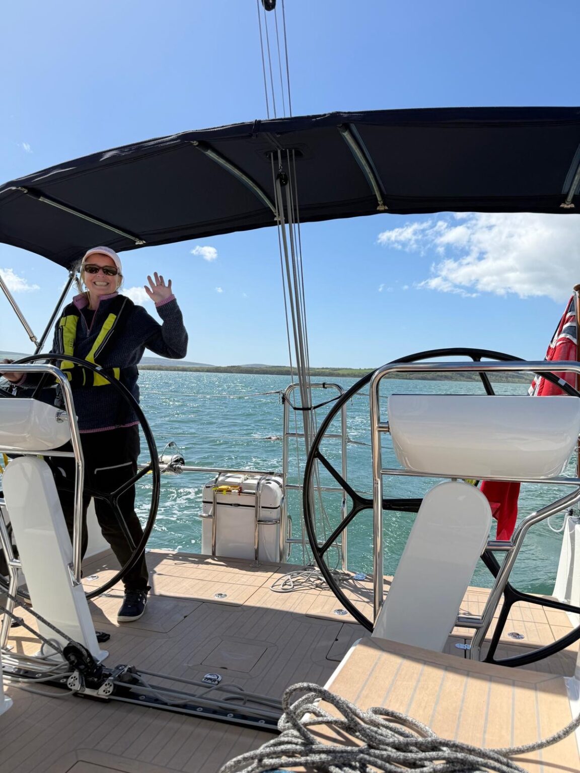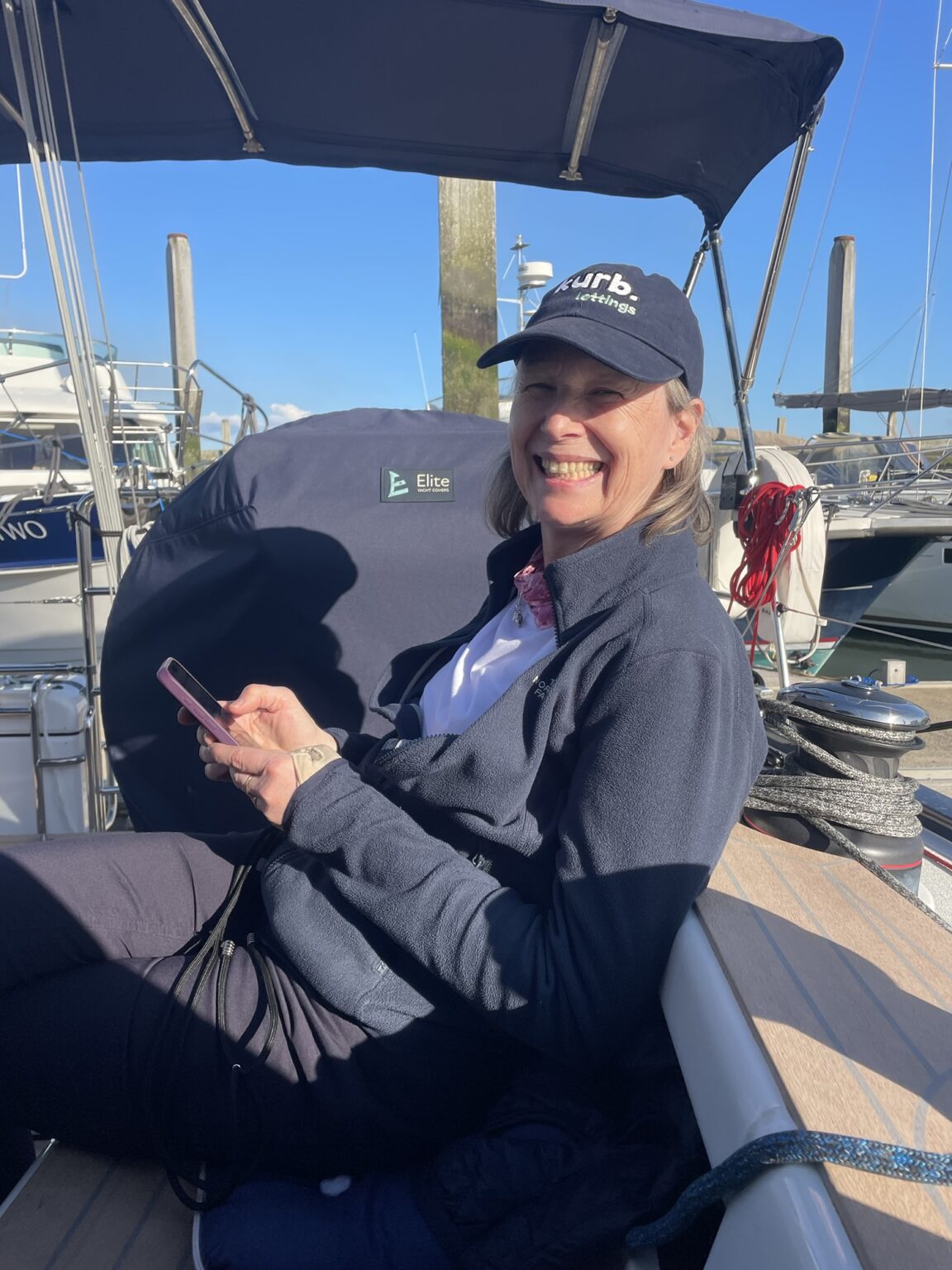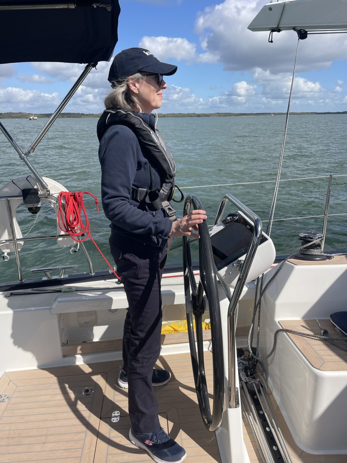 Caroline’s single sailing experience several decades ago was a scary force 8 in a smaller boat and it was not a nice one – but this time, apart from one ‘tippy bit’ it was much more pleasant.