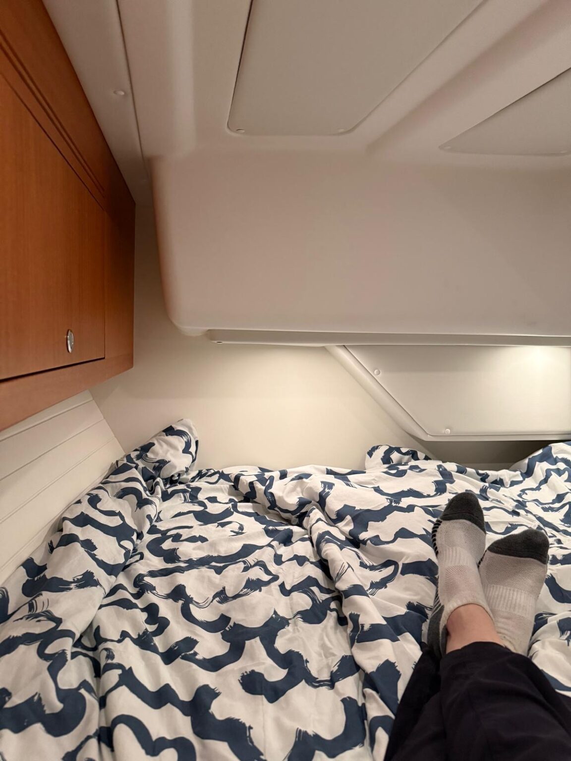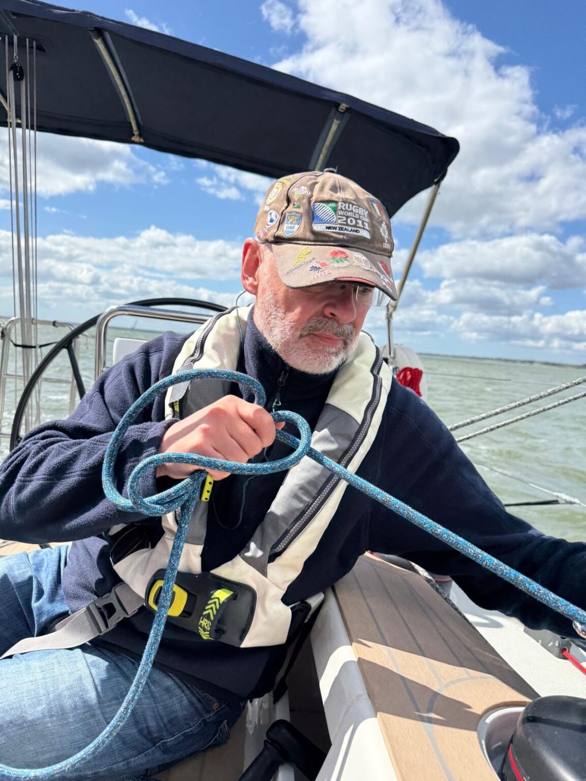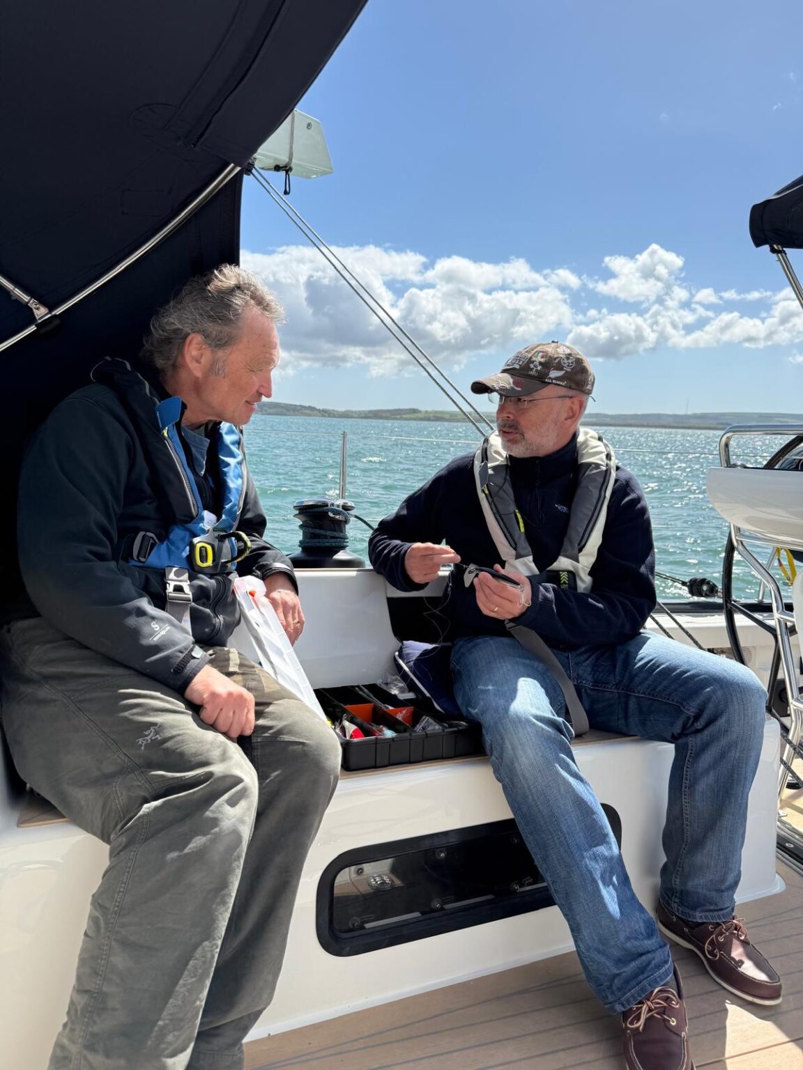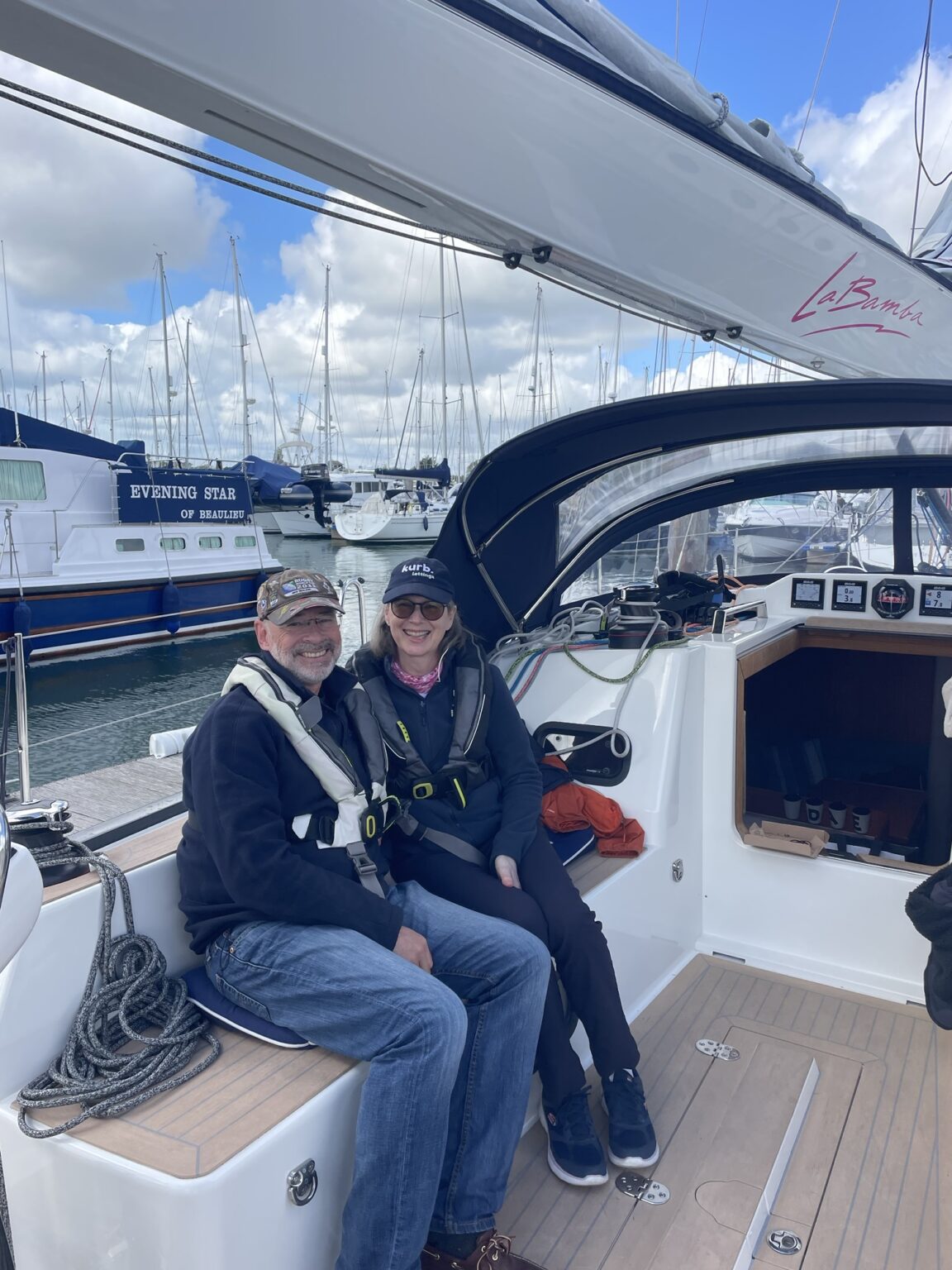 Caroline’s single sailing experience several decades ago was a scary force 8 in a smaller boat and it was not a nice one – but this time, apart from one ‘tippy bit’ it was much more pleasant.