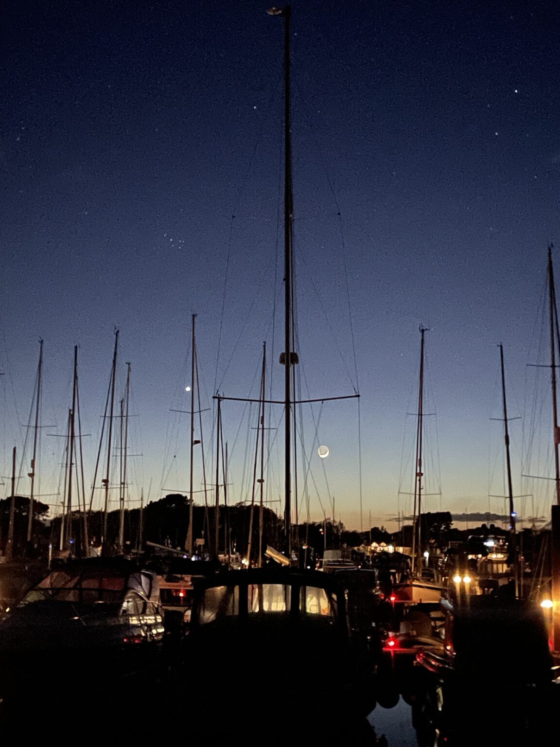We enjoyed a lovely meal at the Haven, the restaurant just here at our marina. They are always very friendly and it was a fine evening as the sun set over the salt marshes.