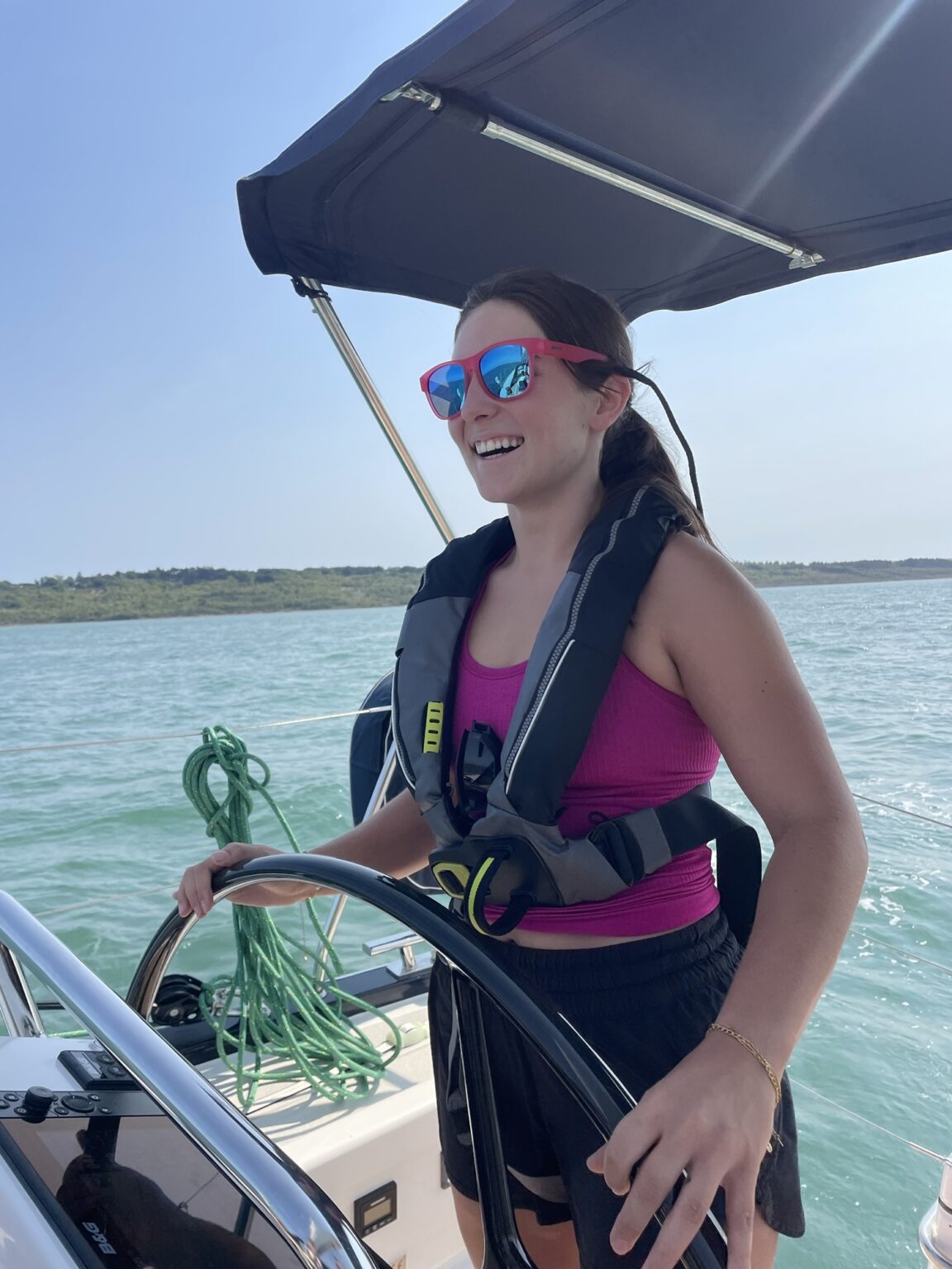 Upwind we tacked with the Cutter staysail towards Cowes, with some help from the tide, and everyone took a turn on the helm.