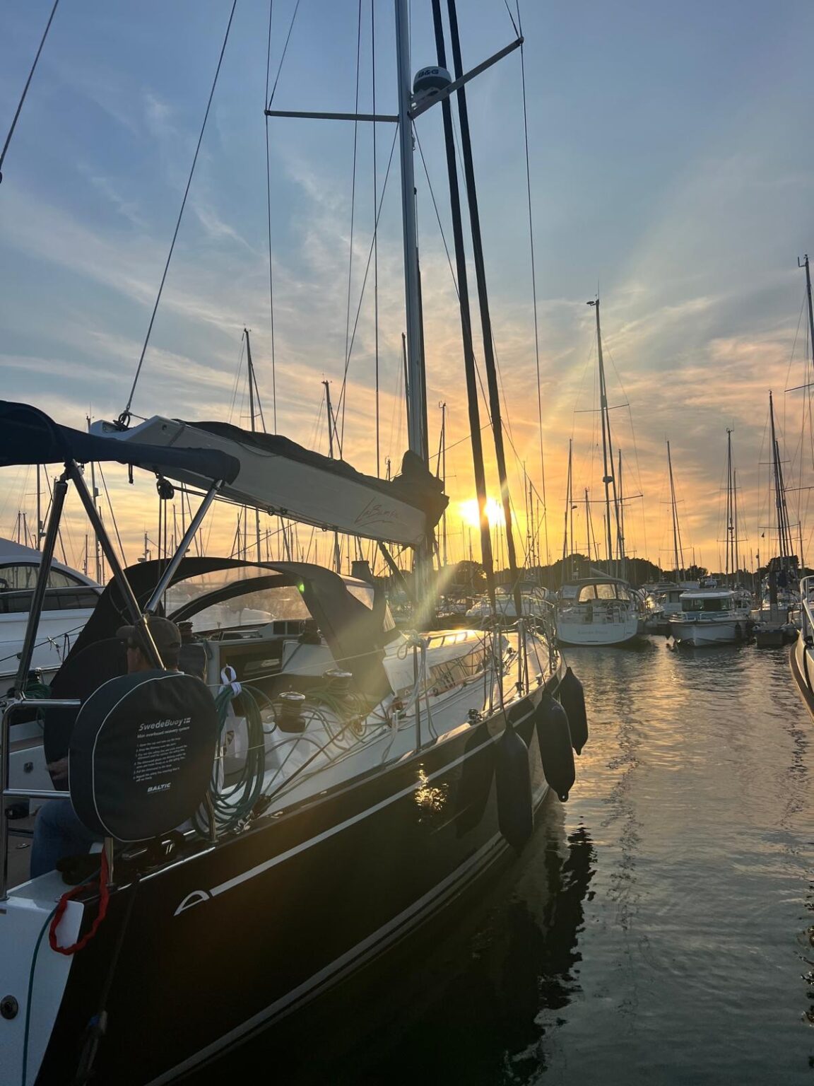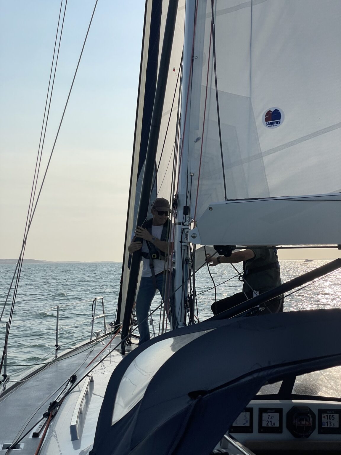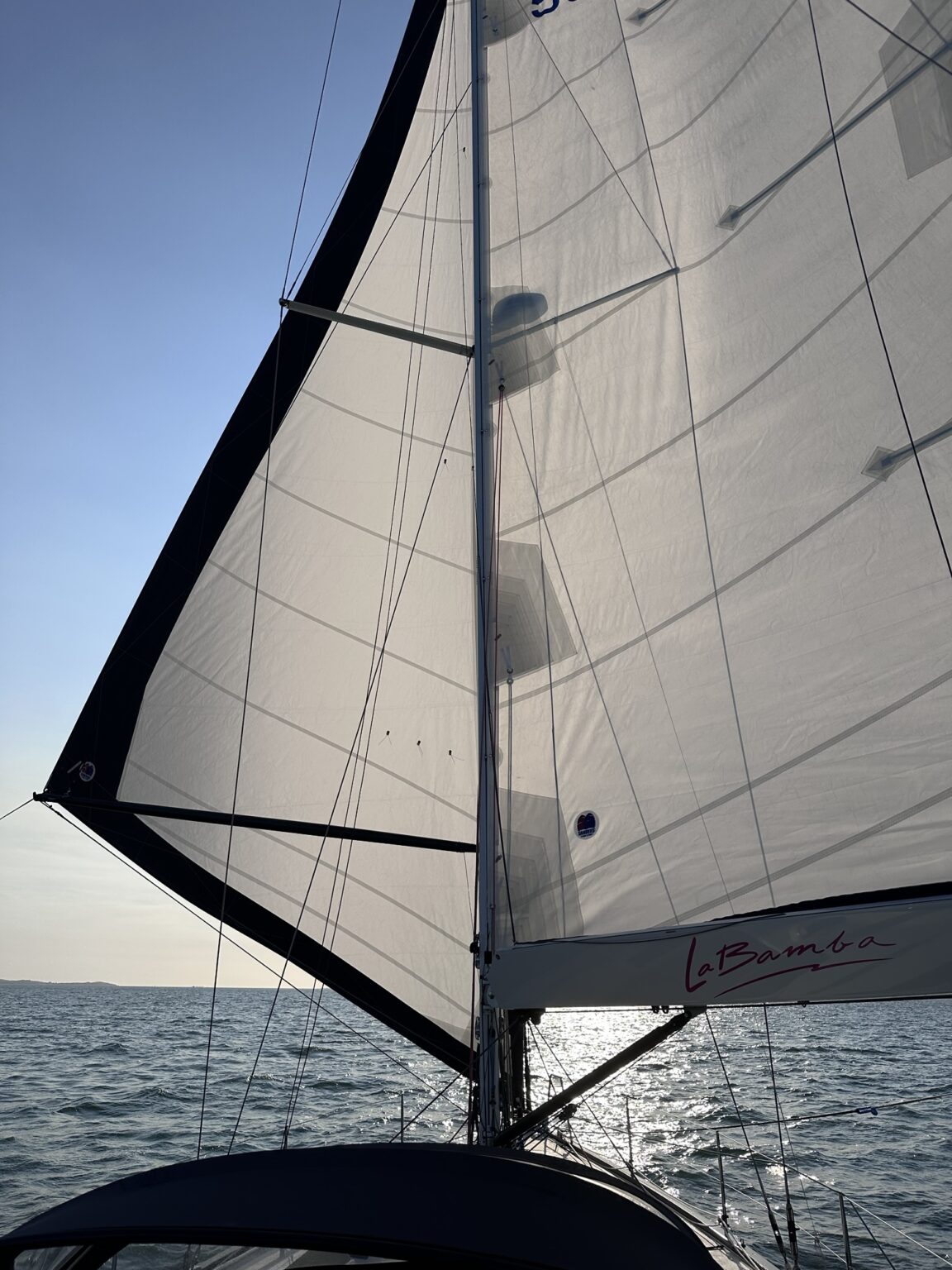 We are trying out a new sail configuration: Main, Cutter and Yankee which is what we expect to use for the ARC. Our ARC is now postponed until next year as our boat isn’t ready yet.