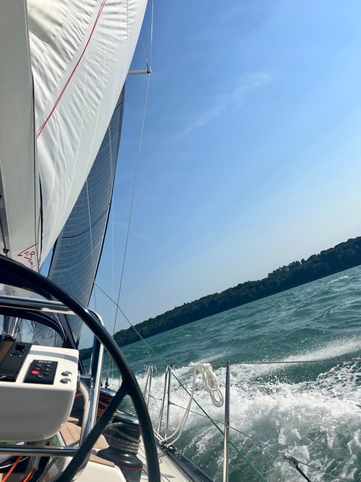 The Cutter isn’t as big as our usual jib but it means we don’t need to reef as soon as we would normally.