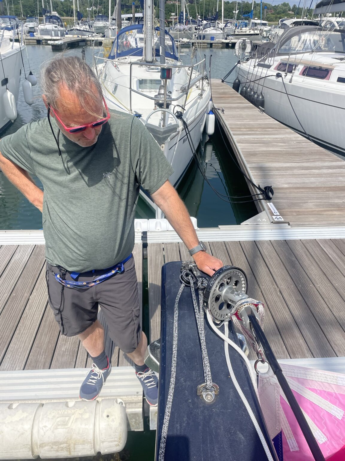 On Monday we did a dry run on the dock of rigging Lily to see how to attach her drum to the bowsprit.