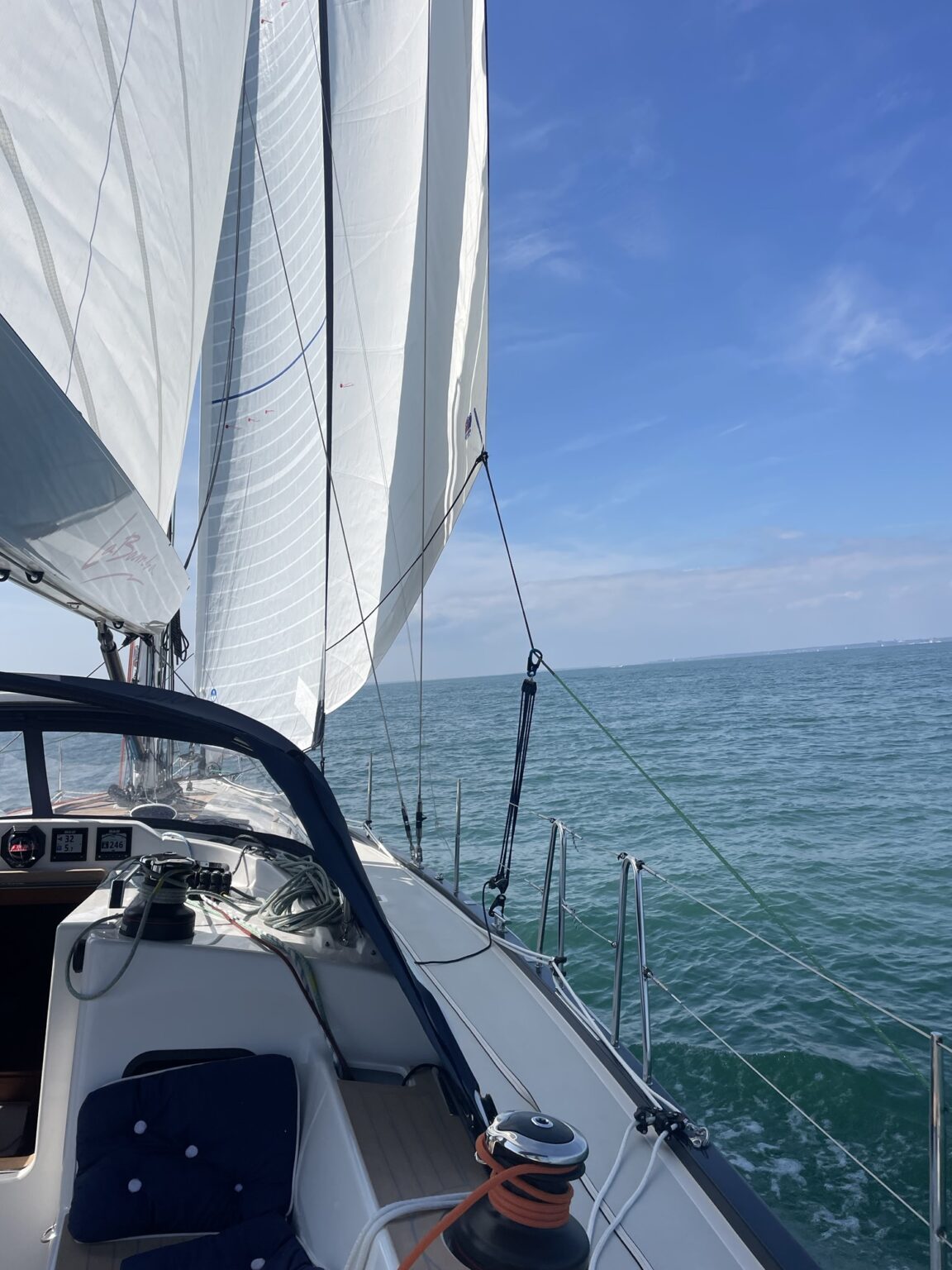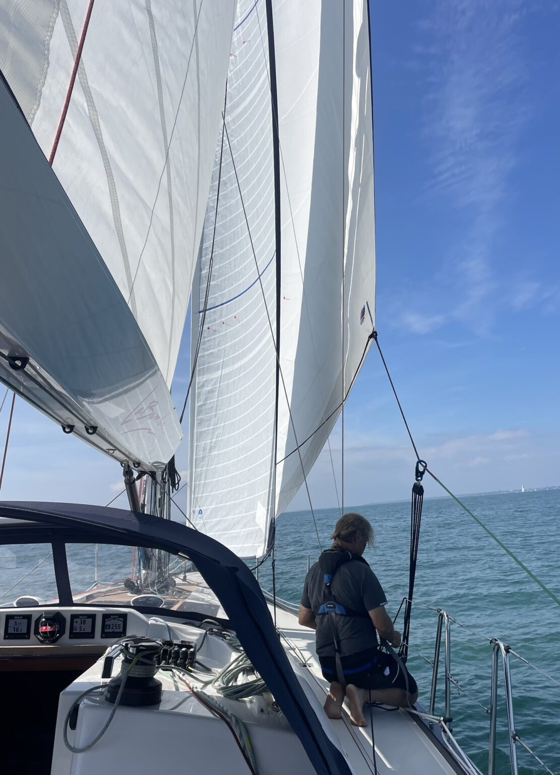 Fortunately the wind filled in before we got to the Needles – it was on the nose so we tacked up with the Cutter and wished we had our bigger Jib in these light winds.
