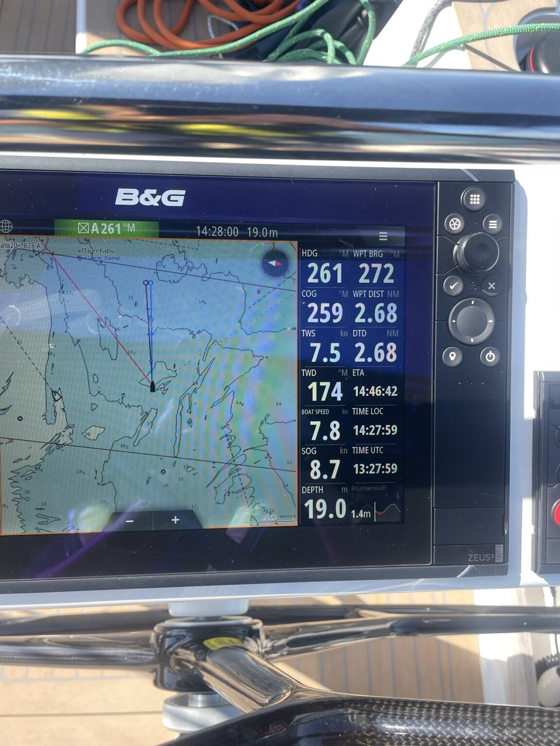 Here you can see the wind speed is 7.5 knots and we are doing 7.8!