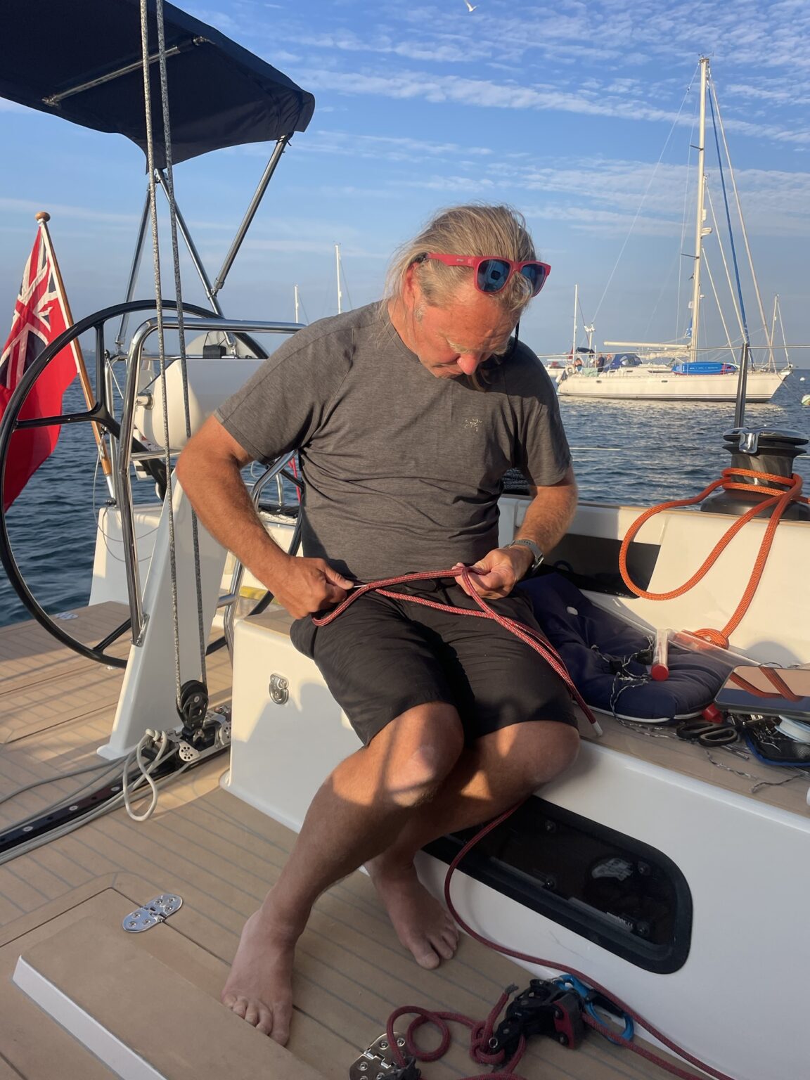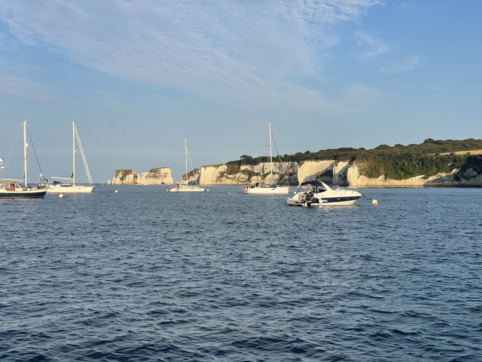Studland was busy but we found a buoy and I used our special slip-through boat hook for the first time as the buoy had lost its mooring rope so I had to feed our rope through the metal hoop on the top of the buoy. Success on the second attempt!
